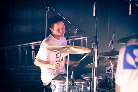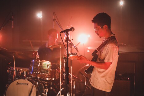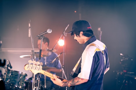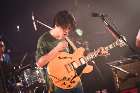 第1部はメンバー4人が向かい合って繰り広げるバンドセッション。角舘健悟(G, Vo)の刻むリズムに合わせてメンバーがフロアに登場すると、4人はさわやかなナンバー「Understand」でライブをスタートさせた。浮遊感のあるサウンドが印象的な「Megumi no Amen」では、上野恒星(B)の軽やかなベースに乗せて、粕谷哲司(Dr)が目を閉じながら気持ちよさそうにドラムを叩く。その後「Summer」に突入すると4人はジャムセッションを展開。ライブではオーディエンスのシンガロングが恒例になっている「Ride on Wave」では、配信中に視聴者から「ライドオンウェーブ!」というコメントが多数書き込まれた。