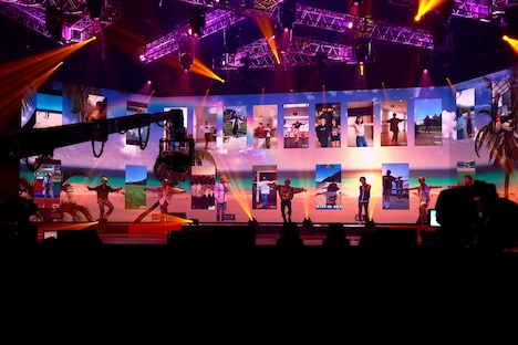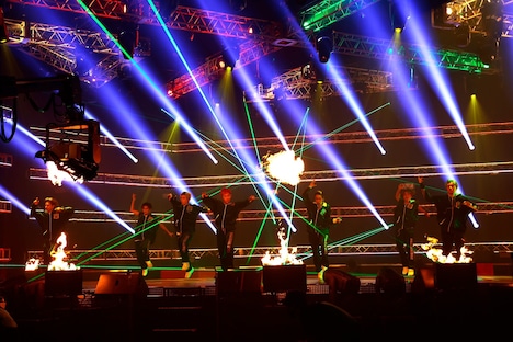 砂田が「今年最後の夏の思い出作りましょう」と呼びかけ始まったのは最新シングル「SUMMER HYPE」。ここではTikTokハッシュタグ「#サマハイ」で投稿された動画が背後のスクリーンに映し出され、ファンとBALLISTIK BOYZがコラボレーションした。代表曲の「テンハネ -1000%-」ではハンドスプリングやバク転など、メンバー全員が得意のアクロバットを披露。さらに「Blast Off」「Make U a believer」とクールな楽曲を畳み掛け、視聴者を沸かせた。