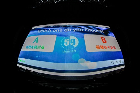 続いてステージ前に現れたスクリーンに「視聴を続ける」「視聴をやめる」という選択肢が投影される。しかし画面に乱れが生じ始め、アンケート機能がストップ。エラー表示のようにオーラルの“目玉マーク“が紗幕に多数映し出されたかと思うと、恒例の“4本打ち”をステージ上で行うメンバーのシルエットが浮かび上がった。スクリーンが再び開くとそこには観客と向き合う形の“普段のオーラルのステージセット”が登場し、ライブの後半パートがスタート。山中の「オーラルのライブはやっぱこれっしょ!」という叫びから、4人は高速のギターリフが印象的な「STARGET」で一気に観客のテンションを引き上げる。「5150」のシンガロングパートでは山中が観客に向かって「声出せないけど、俺らとあんたたちはつながってますから!」と熱く訴えかけた。人気曲「BLACK MEMORY」まで激しいサウンドの曲を立て続けに畳みかけたオーラル。彼らは本編ラストに「Slowly but surely I go on」を優しく奏でて、フロアにピースフルな余韻を残した。