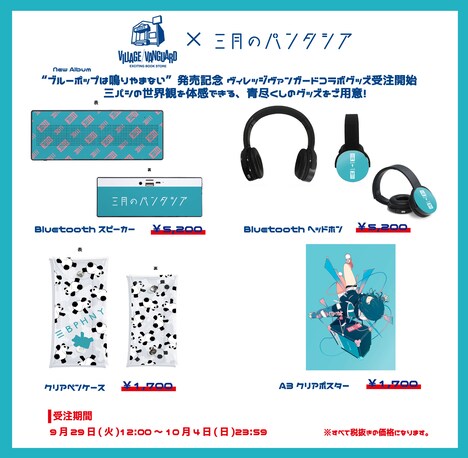 また三月のパンタシアとヴィレッジヴァンガードがコラボレーションした限定グッズの発売も決定した。アイテムはBluetoothスピーカー、Bluetoothヘッドフォン、ペンケース、ポスターの4種で、いずれもアルバムのテーマカラーである青色を基調としたデザインとなっている。