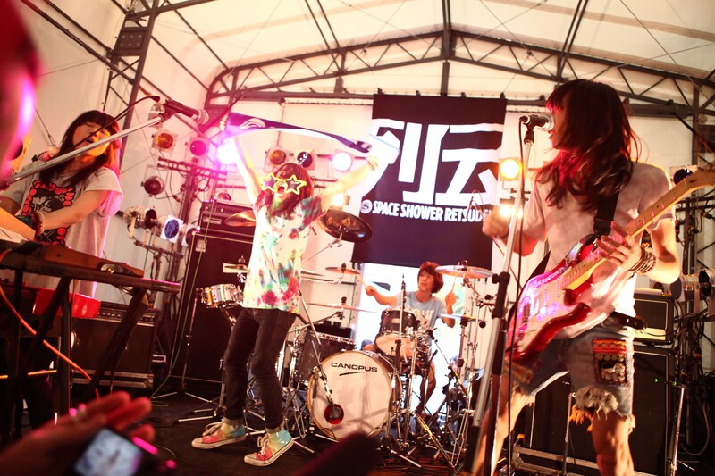 列伝テントのトリを飾ったのはねごと。キュートなルックスとは裏腹に、1曲目「インストゥルメンタル」からガールズバンドとは思えないダイナミックなパフォーマンスと完成度の高いバンドサウンドで観客を圧倒。「ランデブー」では恒例の澤村小夜子(Dr)による「今日のひとこと」も披露し、オーディエンスとのコミュニケーションを楽しんでいた。
