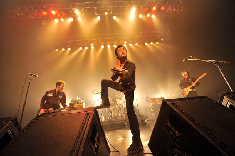 その後は大阪公演でトリを務めた怒髪天。「枯レ葉ノ音」でシリアスにスタートしたライブは、「GREAT NUMBER」「労働CALLING」で一気にお祭りモードに。今回「スペシャ ザ ワールド」のイベントTシャツをデザインした増子直純(Vo)は、大きく「男」と一文字描かれたTシャツについて「イベントの趣旨を汲んでいないTシャツを作ってしまいました(笑)。各バンドが1つずつデザインするかと思ってたんで」と弁解していた。そして「日本初のアンチクリスマスソング」という新曲「Merry X'mas Mr.Lonelyman」をクリスマスシーズンに先駆けて披露。最後は「ロクでナシ」「酒燃料爆進曲」「オトナノススメ」を連発し、熱狂のうちにステージを終了した。