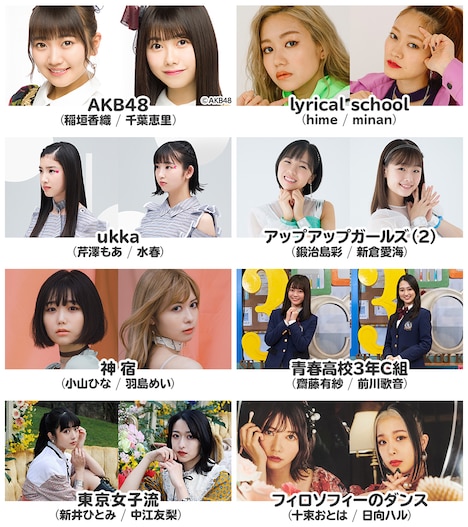 先日、バッファロー吾郎Aとせきしろは大会の対戦カードを決めるトーナメント抽選会を実施。その結果、第1試合でアプガ(2)とリリスク、第2試合でukkaと青春高校3年C組、第3試合でAKB48と神宿、第4試合で女子流とフィロのスによる対決が行われることになった。出演者はお題に対してイラストで答えることも可能で、回答の“かわいさ”も審査対象となる。Streaming+では3月22日23:59まで早割チケットを販売中。