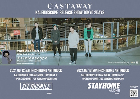 「Kaleidoscope Release Show -TOKYO 2DAYS-」は5月19日にCastawayのニューシングル「Kaleidoscope」が発売されることを記念して行われるライブイベント。12日公演にSee You Smile、13日公演にSTAY HOME ALONEがゲストアーティストとして出演する。今後もゲストは追加される。
