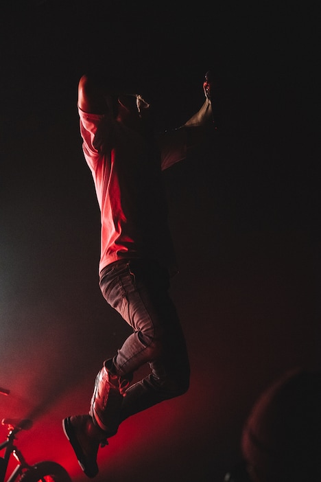 今年1月に新レーベル「やっちゃったエンタープライズ」を設立し、自身が立ち上げた昭和レコードから独立した般若。本公演は独立後初の有観客ワンマンライブであり、コロナ禍による制限の中、表立ったライブ活動を控えていた彼にとっては悲願のステージだ。開演時刻を少し過ぎた頃、昨年発表した最新アルバム「12發」の冒頭を飾る「INTRO」が流れてくると、般若はデンマーク製の電動自転車に乗って登場。このクールなバイクはライブ前日に地元・三軒茶屋で盗まれたものの、般若が盗難者に向かってSNSで呼びかけたところ、約1時間半後には戻ってきたという彼の愛車だ。般若のファンであれば、一連の出来事を当然知っており、会場の熱気は一気に高まった。