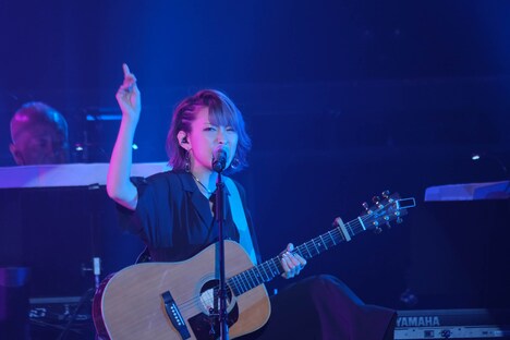 定刻を迎え、ステージを覆う幕が少し開くと、スポットライトに照らされてステージ中央に座るMARiAの姿が現れる。彼女はピアノの演奏をバックにしっとりと「憐哀感情」を歌い始め、自身のソロライブをスタートさせた。その後も彼女は「マチルダ」「ガラスの鐘」とソロアルバムの収録曲を切なくも力強く歌い上げ、オーディエンスの心を鷲づかみにしていく。4曲目に披露された「手探る夢 繋ぐ糸」はソロアルバムに未収録の新曲。ジャジーなピアノにMARiAがスキャットを重ね、生バンドのスイングする演奏でライブを見守るオーディエンスを揺らした。