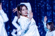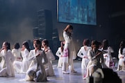 先輩と後輩をつなぐ愛に会場が感動的な空気で包まれる中、メンバーは観客にクラップのリズムをレクチャーして会場を盛り上げ、ハイテンションでラストスパートへ。「なぜ 恋をして来なかったんだろう?」では大園玲を中心にMVを彷彿とさせる糸を使った演出が繰り広げられ、「Buddies」では増本綺良を中心に壮大で肯定感あふれる楽曲の世界観が表現された。そして武元唯衣の「これ以上、悔しい思いはしたくない。もう自分からは逃げない。私は今日ここで生まれ変わります」という宣言を合図に、16人は4月にリリースされた2ndシングルの表題曲「BAN」を披露。センターを担当した武元は紙吹雪が舞う中で力強い存在感を放っていた。