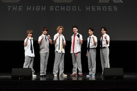 「ザ・ハイスクール ヒーローズ」は物語の舞台・五星学園の平和を守ろうとする高校生たちを描く“戦隊ヒーロードラマ”。岩﨑大昇は「カッコいいアクションやスーツ、ヒーローへの変身など、ものすごく楽しい要素もいっぱいあるんですけど、人間のものすごく熱いところを描いたヒューマンドラマの部分も注目してほしい」と作品をアピールし、那須雄登も「毎話毎話、『このセリフ、いいなー!』って思う箇所がけっこうある」と同調する。会見の中では劇中に登場する“変身ポーズ”も披露され、メンバーは役柄の個性を反映させたそれぞれの変身ポーズを決めてみせた。