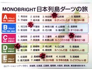 これは先週1月21日に配信されたナタリーTVの企画「MONOBRIGHT 日本列島ダーツの旅」で決定したもの。メンバーがダーツを使って追加公演開催地を決める模様はUstreamで生中継され、多くの視聴者がその様子を見守った。