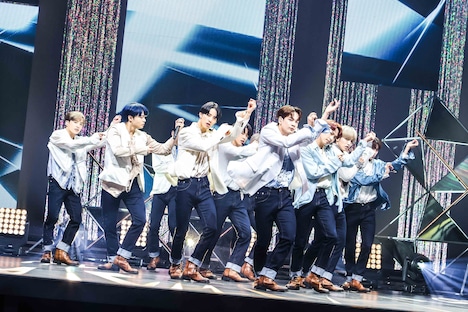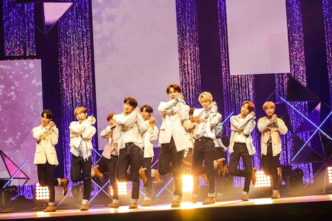 オープニングではメンバーがシングルのリードトラック「REAL」について解説。この曲の振り付けには「まだ見たことのない自分に出会う」という意味を込めて2人1組のハグダンスが取り入れられている。白岩瑠姫はMCに「メンバー同士でハグすることになって、抵抗はなかったですか?」と問われると「ないですよ! 仲がいいので。誰とハグしてもいい関係ができています」と強調した。MCからハグダンスの実演を求められた川西拓実はそんな白岩をすかさず指名。川西と白岩がハグダンスをするのは初ということだが、2人はその場で打ち合わせをし、メンバーの生歌唱をバックにセクシーなハグダンスをキメた。その後、JO1は「REAL」を披露し、磨きのかかったシンクロダンスを展開。気迫の込もったパフォーマンスでグループの成長を示し、楽曲の後半では華麗にハグダンスを繰り広げた。