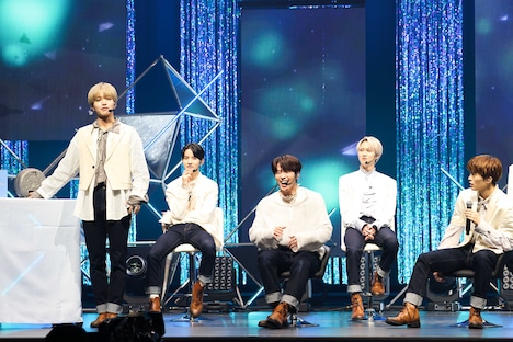 その後、メンバーはそのほかの収録曲についても解説。「ICARUS」について川尻蓮が「イカロスの翼のようにいつか儚く散ってしまう夢とわかっていても、太陽のあなたのもとに飛んでいこうという、切なくも力強い歌になっています」とミュージカルのようにしなやかな動きをしながら語ると、川西も「Blooming Again」について「もう一度咲き誇るというメッセージが込められた、感動する歌になっています」と川尻を真似て花をイメージした動きを取り入れながらアピールする。金城碧海は「僕は個人的に拓実くんの『覚えてて 主役は君』というパートが好きで。歌のスキルがあるのはもちろん、感情が込もってるんです」と「Blooming Again」の聴きどころを挙げて、川西を照れ笑いさせた。