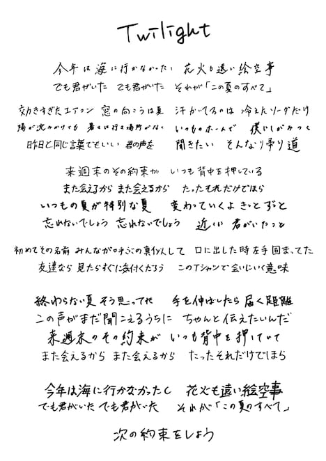 リーダーの末吉9太郎は「この2021年夏は皆さんが思い描くような夏にはなっていないと思います。そして僕たちCUBERSが願う夏にもなりそうにありません。ですがまた皆さんとたくさんの思い出を作れる夏が必ず来ることを信じて、そしてそんな日々を僕達CUBERSがこの先作っていくことを約束します。僕達のこの声が届きますように」とコメントしている。またライブ映像の公開に合わせてメンバー直筆の歌詞カードも公開された。