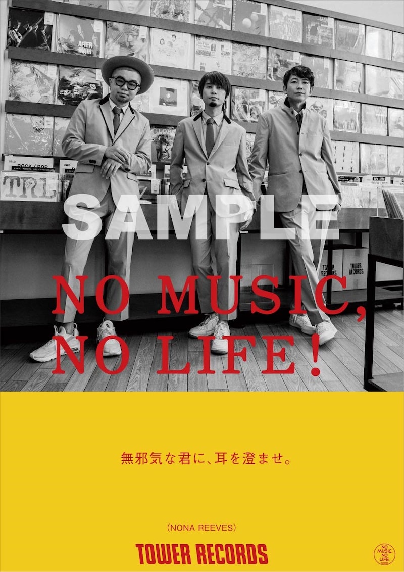 9月8日にニューアルバム「Discography」をリリースするNONA REEVES。アルバム入荷日よりタワーレコード全店で掲示される「NO MUSIC, NO LIFE.」のポスターには「無邪気な君に、耳を澄ませ。」とメッセージが添えられている。8月24日にはポスター撮影の様子を収めたメイキング映像、9月7日にはNONA REEVESのインタビュー動画が、タワーレコードオフィシャルサイト内の「NO MUSIC, NO LIFE.」ページにて公開される。