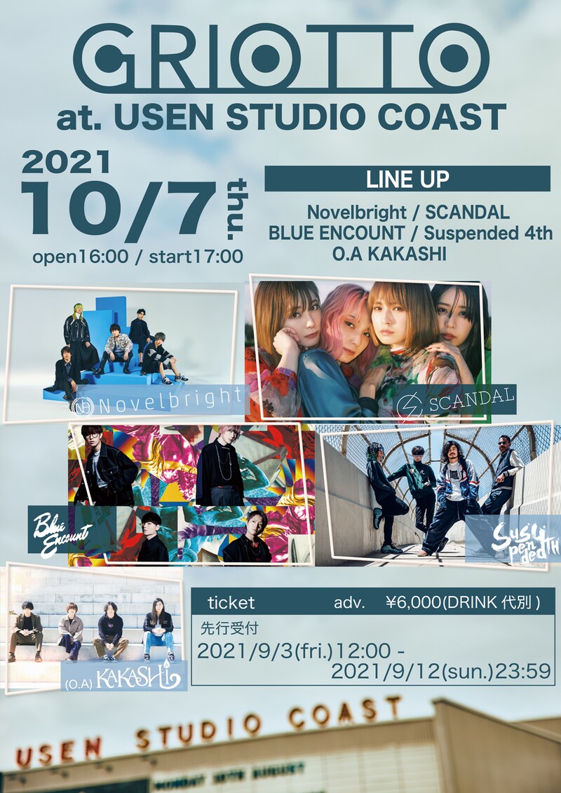 「GRIOTTO」は、東京・TSUTAYA O-Crestのブッキングスタッフであるもりただいちが主催するライブ企画。もりたはイベント発足当初からUSEN STUDIO COASTでのライブ実施を目標としており、この日は