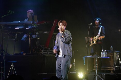 スツールに腰を掛け、アコースティックギターを手にしながら、昨年のメジャーデビューから今に至るまでの道のりを改めて振り返ったMORISAKI。「役者をしながら音楽活動もできている、ありがたい状況」と自身の立ち位置を説明しつつ「音楽人としての僕は“ほぼほぼ森崎ウィン”というか、自分の一部を切り取って皆さんに伝えていく感覚で。森崎ウィンとして1人で音楽をやるって、どういうことなんだろう?とすごく自問自答することもありました」と明かした。「何を歌いたいんだろうと思ったとき、まずはありのままの僕を見てもらうことなんじゃないのと思いまして。“いつだって戻ってこれる場所”というイメージをこの曲に盛り込みました」と続けたMORISAKIが弾き語りで披露したのは「START IT OVER」。丁寧な手つきでギターを爪弾きながら、MORISAKIは歌詞のひと言ひと言を噛みしめるように、優しい歌を届けていた。