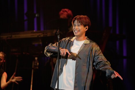 バックバンドを従え、冒頭からソウルフルかつパワフルなボーカルを響かせるMORISAKIは、全身でリズムに乗ってオーディエンスの体を揺らす。「パレード - PARADE」はスズキ ソリオ バンディットのCMソングとしておなじみの楽曲だが、曲中には照明演出を効果的に使ったダンスブレイクが差し込まれ、ライブステージならではのエンタテイメント性の高いパフォーマンスで観る者を魅了していくMORISAKI。スタンドマイクに手を置き、スムースで艶のある歌声を聴かせた「WonderLand」を終えると、彼は「皆さん楽しむ準備できてますか! 今日は思う存分手を叩いてください」と気合いのにじむ声でWIN's CREW(MORISAKI WINファンの総称)に呼びかけた。