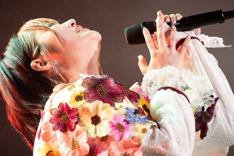 その後は再び9人全員でのパフォーマンスに戻り、「青い青い星の名前」を伸びやかに歌い上げる。バンドメンバーの紹介に続いては迫力たっぷりのバンドサウンドに乗せて「自由へ道連れ」をにぎやかにパフォーマンスした。歌い終えた星名は、ステージを駆け抜けながらメンバー全員とタッチする間奏の振り付けについて「8人だと(距離が)長い長い!(笑)」と、新メンバーを加えたフォーメーションの変化に苦笑いを浮かべていた。