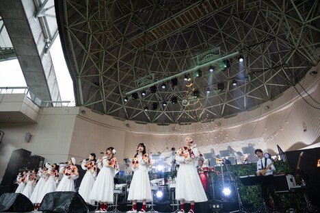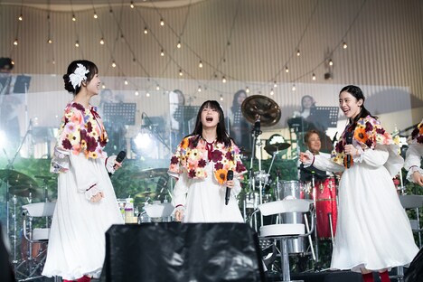 ここからは「ちゅうおん」恒例のソロカバー曲のコーナーに入るが、直前に中山は「今年はちょっと変わった形でお届けしたいと思います」と紹介。今年は総勢9名がメドレー形式で個性豊かな楽曲の数々を披露した。バンドがチャットモンチー「シャングリラ」のイントロを奏でる中、ステージ中央に進み出てたのはトップバッターの小久保。ほかのメンバーが笑顔で見守る中、彼女は若干緊張した表情ながらもあどけなさの残る歌声が映えるこの曲を堂々と歌い上げた。続いて始まったのは安本彩花が歌う、Da-iCE「CITRUS」のカバー。ボーカルの難しさでも知られるこの曲を、安本は時折笑顔も浮かべて余裕を感じさせながら熱唱した。3番手の真山が選んだのは松原みき「真夜中のドア~stay with me」。優雅な身のこなしとともに、真山ならではの妖艶なボーカルを貫禄たっぷりに響かせる。風見は原田知世「ダンデライオン~遅咲きのたんぽぽ」をカバー。まっすぐ伸びやかな歌声で、楽曲の世界を表現した。