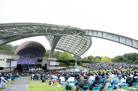「ちゅうおん」は生バンド演奏によるステージを着席スタイルで楽しめるエビ中の野外コンサートシリーズで、今年で4回目の開催。今年のエビ中は5月に迎えた桜木心菜、小久保柚乃、風見和香の新メンバー3名の初パフォーマンスを8月の野外ライブ「みらいに響け、みなとのPLAYGROUNDこと ファミえん2021 in 赤レンガ倉庫」で行う予定だったが、新型コロナウイルス感染拡大の影響によりライブは中止に。その後8月29日に神奈川・横浜アリーナで行われたアイドルフェス「@JAM EXPO 2020-2021」にて現メンバー9名全員でのステージを披露する予定だったものの中山莉子が体調不良で欠席しており、今回の「ちゅうおん」が9名全員での初のステージとなった。この記事では9人が初めてステージにそろった初日25日第1部の様子をレポートする。