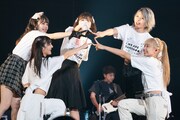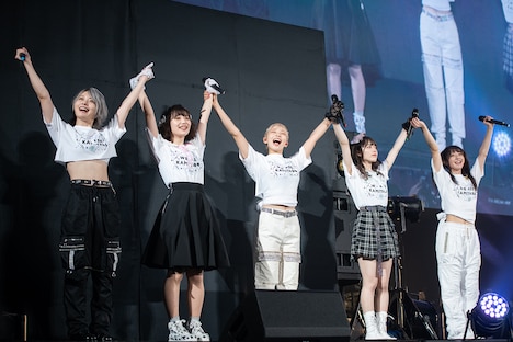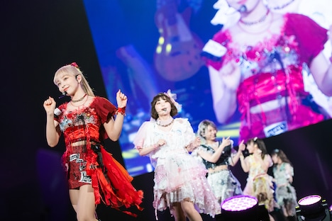 その後「グリズリーに襲われたら♡」「Brush!! -Paradise Remix-」の2曲を終えたところでステージは暗転。巨大なスクリーンにメンバーが神宿7年間の歩みを語るインタビュー映像が流された。再びステージに明かりが灯ると、そこにはギターを抱えた塩見の姿が。複数のミラーボールを積んだオブジェを背に、塩見はソロ曲「Twenty」を歌う。続いて客席に現れた羽島みきがダンサー2人を従えて「トキメキ☆チュウ」、巨大なマスクのオブジェを燃やして登場した羽島めいは「Intro:Attitude」とそれぞれソロ曲を披露。さらに一ノ瀬、塩見、小山によるバラード「Erasor」とソロやユニットの楽曲が続いた。5人による「LOVE GAME」「MAD GIRL」のクールなパフォーマンスとインタビュー映像を挟み、小山はファンシーなベッドから飛び出してソロ曲「を愛に」を、一ノ瀬は赤いドレス姿でストリングスカルテットの演奏に乗せてソロ曲「Outro:Lion」を熱唱。羽島姉妹は幼少時の写真をスクリーンに映しながらユニット曲「SISTERS」をデュエットした。