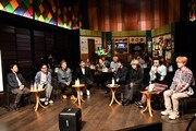 開演時刻になると、番組セットをステージに持ち込み、フロアに円卓を配置した会場にチュートリアル、陣、RIKU、“ハッピーコーディネーターの”