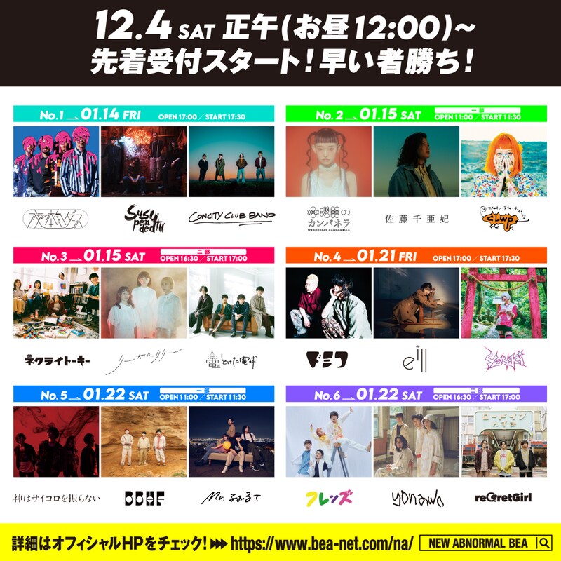 福岡市のコンサートプロモーター・BEAとライブハウス・Zepp Fukuokaがタッグを組んだイベント「-NEW ABNORMAL -ZERO EN START-」が、1月に6公演にわたり開催される。