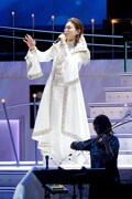 シックな黒の燕尾服に着替えた氷川が歌唱したのは、アコースティックなアレンジの「母」「星空の秋子」「きよしのズンドコ節」。さらに紺の紋付袴姿で初期の作品から「白雲の城」「大井追っかけ音次郎」、2000年2月発売のデビュー曲「箱根八里の半次郎」をパフォーマンスした。氷川は来年発売予定の新曲「群青の弦」を歌い上げたあと、「ひさしぶりの演歌です。『春の海』を作曲された宮城道雄さんを題材にした作品です。宮城さんは幼い頃に失明された方ですが、目が見えないというハンデがあってもその苦悩から喜びの歌をお作りになられ、感銘いたしました。どんなハンデがあろうと、どんなふうに生まれようが、そこからまたがんばろうという気持ちさえあれば、芸術というのは無限の可能性がある。そんな限界を突破していく思いをこの作品に感じています」と紹介した。