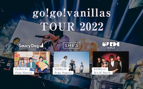 go!go!vanillas全国ツアー対バン公演にSaucy Dog、SHE'S、フレデリック