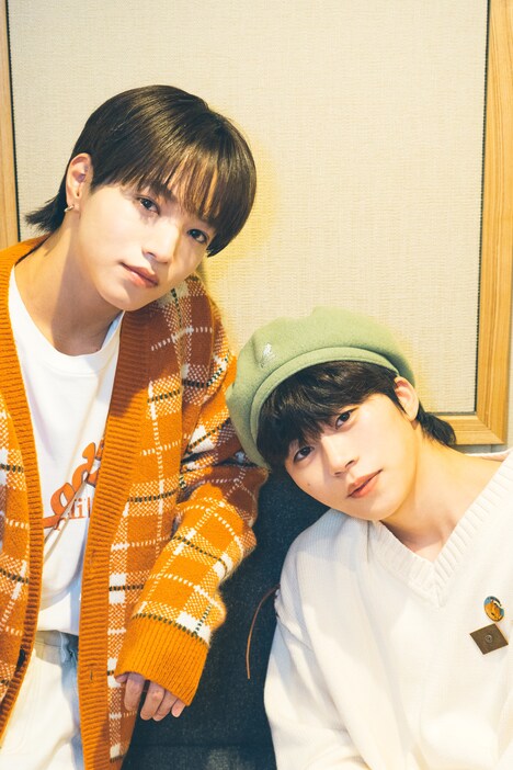 大平は自身が演じる将基について「冷静でグループのリーダー的存在」と話し、「(優と煌成の)ケンカを止めるシーンがあるんですけど、僕たちも『ここの振り付けはこうだ』とか熱くなりすぎて言い合いみたいになることがあるので、同じアイドルグループとしてこういうことってよくあるよなと共感できました」とコメント。そんな大平に対し、木全は「祥生もそういうときは『やめときやめとき』みたいなタイプだよね。だから役にまさに合ってると思います」と納得の表情を浮かべた。一方の木全も自身が演じる煌成と近しい部分があるそうで、「おちゃらけてるというか、将基と比べると若い印象のキャラクターです。煌成が優のことを変な呼び名でイジるシーンなんかもあるんですけど、僕も普段そういうことしてるなと思いました」と彼が自ら述べると、大平も「木全と煌成はおちゃらけている部分と、物事に対して真剣というか、熱い部分を持ってるところが似てるなと思います」と同調した。