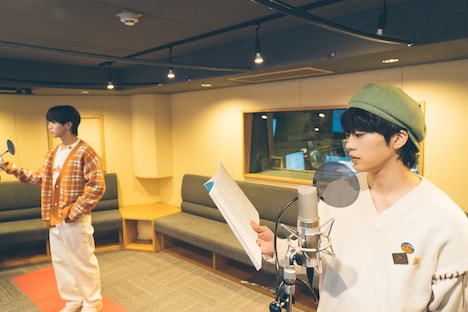2020年に公開された劇場アニメ「映画 えんとつ町のプペル」に出演した大平と、「群青のファンファーレ」が声優初挑戦となる木全。台本を受け取ったときの心境を聞かれると、大平は「ずっと声優のお仕事がやりたかったので、こういう機会をいただけて本当にうれしかったです」と喜びいっぱいに話す。木全も「僕も声優のお仕事に興味があって、ずっとやりたかったんです。初めて声優に挑戦したのがこんなにすごい作品で。すごいキャストさんや監督さんに囲まれてお仕事ができるのが本当に衝撃というか、びっくりしました」と述べ、演じ方について「声優さんは役を作り込んでこられる方が多いと思うんですけど、今回僕らは監督さんから地声といいますか、僕らの声をそのままをベースにやってほしいというお願いがありまして。キャラクターを理解して、その雰囲気、言い回しの役作りはしたんですけど、声は割といつも通りに近いのかなと思います」と語った。