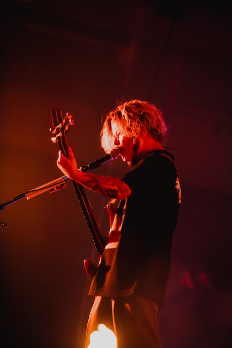 さらにHiroは、その目標へと歩む最中、新型コロナウイルスが猛威をふるい、2021年に東京ドームに立つという夢を叶えられなかったことを切々と語る。彼は観客を真っ直ぐ見据え、「僕たちのことを信じて待ってくれていた人、約束を守れず本当にごめんなさい。でも本当にみんなに支えてもらいました。コロナ禍で試行錯誤して作った曲をみんなが聴いてくれて、ライブに来てくれて、みんなに支えられて僕らは今生きています。申し訳なさと同じくらい、感謝の気持ちでいっぱいです」と心の内を明かした。その後、初期曲「Take it Back!!」やHiroのラップが冴えるナンバー「MONSTER」を含むメドレーを経て、ライブは終盤へ突入。バンドはリズミカルなビートの「猿真似ドロップアウト」、ストレートなバンドサウンドの「REVIVER」をプレイしてラストスパートをかけた。