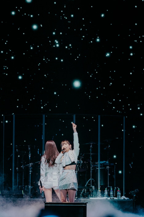 「Club Kids Never Die」「FLAVOR OF BLUE」などの新旧の楽曲を織り交ぜたブロックを経て、PassCodeは一旦ステージから退場。日本武道館公演の開催を宣言した2年前の映像で始まる、メンバーのインタビュームービーがスクリーンに映し出された。胸の内をさらけ出す4人の言葉にハッカーがじっと聞き入り、場内にセンチメンタルな空気が広がる中、ライブの再開を告げたのは南が作詞を手がけたPassCode流のバラード曲「horoscope」。しっとりとしたピアノの音色に続いて、オートーチューンを外したメンバーの生の歌声が響き渡り、ステージ上のスモークや客席で揺らめくライト、星空をイメージした映像と相まって聴く者の胸を強く打った。