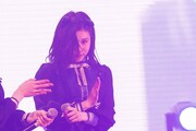 ステージの両端には今年1月に閉館した東京・USEN STUDIO COASTに設置されていた真紅のフルレンジアンプスピーカー、通称“オクタゴンスピーカー”が1機ずつ鎮座。オーディエンスの期待が高まる中、開演時刻になると場内をレーザー照明が交差し、SEの重低音がフロアを包み込んだ。満を持してステージに姿を現したデビアンは、4月末に膝の靭帯を損傷した藤澤ひよりを除く5人でパフォーマンスを開始。序盤のブロックでは「Replay」「SS」「えっとねれみしー」の3曲を披露し、ステージ後方のスクリーンに展開される映像演出をバックに開演早々から会場を心地よい高揚感で満たしていった。MCになると藤澤も登場し、ステージに運び込まれた椅子に腰かける。デビアンに加入して1周年を迎えたばかりの彼女は「ライブすべてに出られるわけではないんですけど、東京1公演目を超えていけるようなライブが届けられるようにがんばります!」と意気込みを語った。