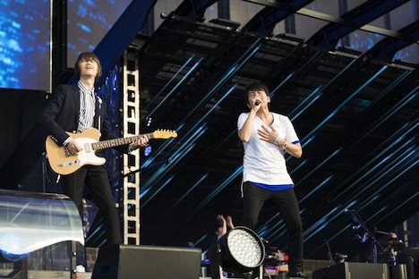 壮大なサウンドスケープを描く「Worlds end」が放たれたのち、スクリーンには満開の桜が咲き誇り、新曲「永遠」の演奏へ。メンバーが織りなす美しくも儚い旋律が、薄暗い空に溶けていった。エモーショナルな空気が広がる中、「others」「Tomorrow never knows」といった孤独な心情が描かれたバラードが続き、その余韻でしんと静まる会場内。ライブ定番のアッパーチューン「光の射す方へ」をきっかけに客席の熱気はぐんと上昇し、「fanfare」「エソラ」では幸福感に満ちたきらびやかなサウンドが会場中に轟いた。本編も残すところあと1曲となったところで、桜井はコロナ禍でライブができなかった期間を振り返り、「このライブがやれるかわからず気を揉んで過ごしていました」と胸の内を明かす。そして「どの曲で最後、皆さんに感謝を告げようかと考え、この曲を選びました。2年間握りしめていた曲です。受け取ってください」とファンに伝え、彼らはいよいよ本編ラストとなる「GIFT」のパフォーマンスへ。桜井は「僕ら探していた 最高のGIFTを 君が喜んだ姿をイメージ、いつもイメージ、今日もこれからもイメージしながら」と歌詞を変えて歌い、メンバーは観客1人ひとりに贈るかのように実直なサウンドを鳴らし続けた。