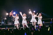 一転、「テレフォニズム」ではクールな演奏に乗せて甘い歌声を響かせる4人。日向と奥津は交互にフェイクを披露して観客を惹き付けた。ここでステージは暗転し、「ホテルに集まってツアーの打ち上げパーティをしたい」と打ち合わせをするメンバーの寸劇タッチの音声が流れる。パジャマのような姿で再登場した4人は、チルなアレンジが施されたmihimaru GT「気分上々↑↑」のカバーをしっとりと歌い上げた。ライブを満喫する十束は「ずっとこの時間が続けばいいのにね」と思わずつぶやく。今回のツアーでは平行して“運命の人”探しをしていたという日向は、次のナンバー「誓い合ったんだってね、LOVE」の最中に自分のメンバーカラーである赤のペンライトを持った観客を指し「ついに東京で運命のハル推しと出会えましたー!」と告げた。ワウギターと歯切れのよいビートのインスト「FUNKY BUT CHIC」に乗せて、4人はパジャマを脱ぎ捨て、白い衣装にチェンジ。「ラブな仲間たちを紹介します!」とバンドメンバーを1人ずつ紹介し、インディーズ時代からの人気曲「アイドル・フィロソフィー」へとなだれ込んだ。続く「シスター」では4人の歌声とエレクトリックピアノのメロウな響きで場内はうっとりとしたムードに。千ヶ崎がエレクトリックアップライトベースに持ち替えてのソウルバラード「ジャスト・メモリーズ」ではパワフルに歌い上げる日向のボーカルがホールを包み込んだ。