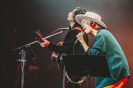 客電が落ち、オーディエンスの温かい拍手に迎えられた吉田山田は、アルバム「愛された記憶」の1曲目に収録されている「世界が変わる」でライブをスタートさせる。デジタル音を盛り込んだ原曲と異なり、本ツアーで彼らはこの曲を弾き語り用にアレンジ。互いの呼吸に合わせてテンポを落としつつ溜めを作るなど、弾き語りライブならではのパフォーマンスでアルバム曲を届けていく。「好き好き大好き」では全国を回ってきたことを受けて山田義孝(Vo)が「好きばい」「好きとよ」と各地方の方言を交えたアドリブで歌う。約3カ月にわたって15都市を回ってきた彼らは「ようやくここにたどり着いた」と感無量。吉田結威(G, Vo)は「最高のライブを15回更新してツアーを回ってきた」と胸を張り、「今日はもっと素敵なライブにする」とツアーファイナルへの意気込みを口にした。