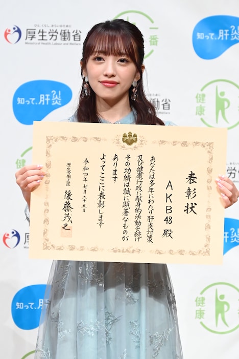 イベントでは本プロジェクトの功労者として後藤大臣より5人に表彰状が贈呈された。伍代は「こうして表彰していただけると身が引き締まる思いです。肝炎は無性症で進行してしまうので早いうちに検査してくださいということを、これからも地道に啓発し続けていこうと思います」とコメント。瀬川は本プロジェクトに参加を決めた経緯について、「杉さんの熱心な活動を見ていて、参加させていただいたほうがいいんじゃないかなと思っていました。それは亡くなった姉や母が(肝炎の)キャリアだったからです。姉は肝炎がもとで亡くなってしまって。人生100年時代と言われていますけど、生きているうちは元気でいたい。何かの力になれたらと思いました」と意気込んだ。