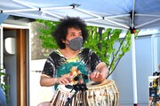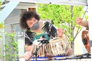 飲食店が軒を連ねるBONUS TRACKの中央広場には夏の日差しに映える白いテントとパラソルが設置され、サラーム海上がセレクトする心地いいチルミュージックが流れる。来場者は冷たいドリンクや、カレー店・ADDAが提供する石濱レシピの特別カレープレートを思い思いに楽しんでいた。U-zhaanと石濱のライブコーナーは住宅街という立地を考慮し、いつもより小音量でパフォーマンスが行われたが、それでも2人の熱の入ったインド古典音楽を間近で聴いた観客は興奮冷めやらぬ様子で拍手を送った。温かな拍手を受け取った2人はアンコールとして、第1部では石川さゆり「津軽海峡冬景色」、第2部では岩崎良美「タッチ」をシタールとタブラで演奏。「何か夏らしい曲を」というU-zhaanのリクエストに石濱は、独自の選曲で応え、会場の笑いを誘った。