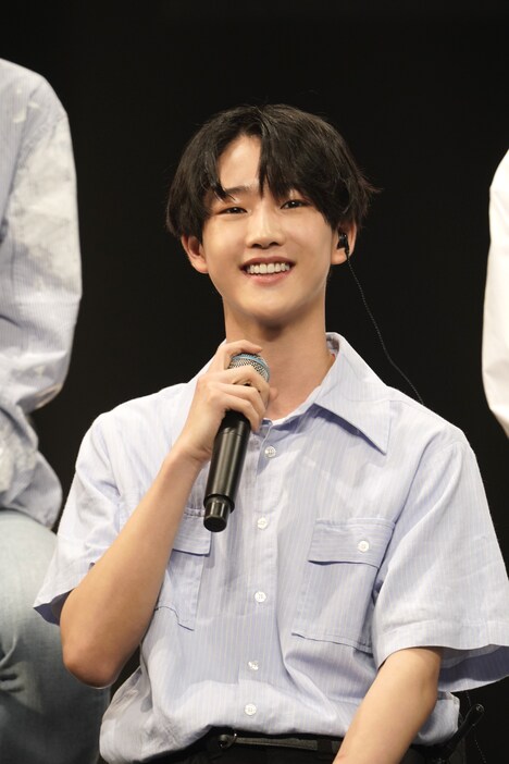 これまでのオーディションの流れをダイジェスト映像で振り返ったあと、15人は辻岡アナウンサーからの質問に次々と回答。練習生メンバーと対面したときの感想を問われたNICHOLASは「楽しみもありましたが、(日本語と韓国語の)言葉の(壁の)せいで仲よくなれるかちょっと心配していました」と語る。部屋を間違えてしまうほど、緊張しながらデビュー組が待つ部屋に向かったというGAKUは「4人に会うのを楽しみにしていました」と語り、MAKIは「『これからがすべての始まりなんだな。よしがんばるぞ』と思いました」と自身を鼓舞していたことを明かした。