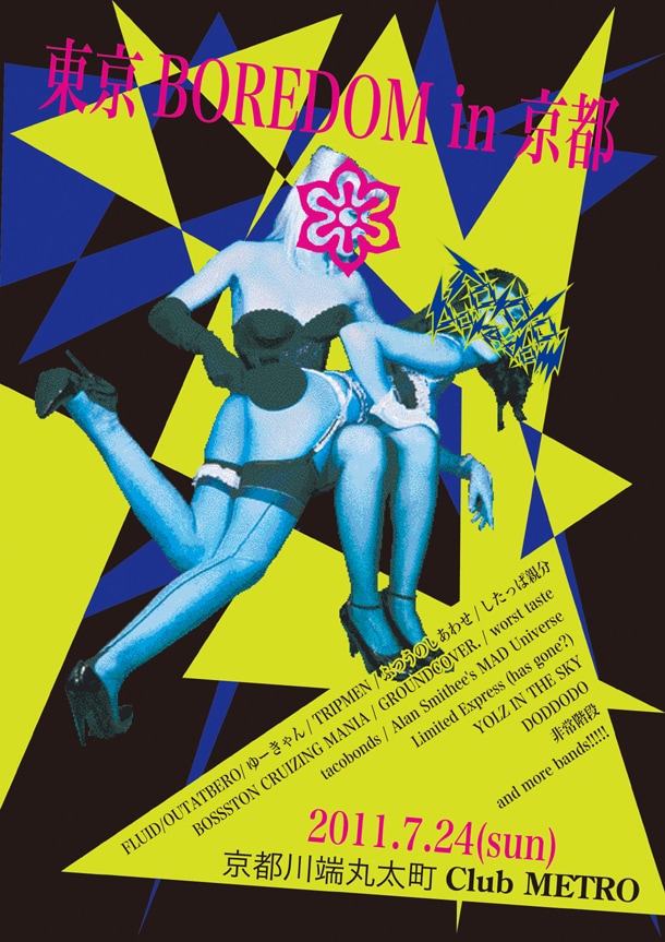 今回のイベントは「ライブハウスをおもしろく」というイベントの趣旨に共鳴した京都Club METROにて開催。昨年の「東京BOREDOM in 東京大学」の大トリでギター破壊、放尿などの破壊的パフォーマンスを繰り広げた