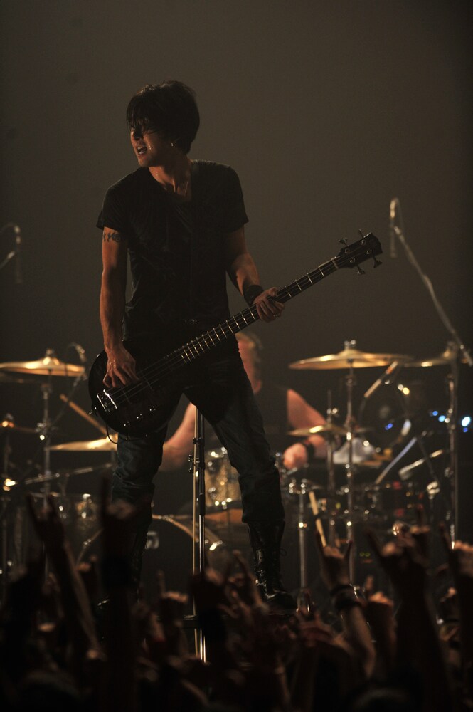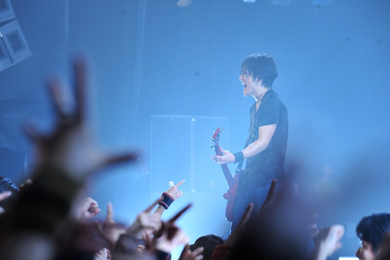 Jの「今日、俺たち楽しそうだろ? これからまだまだ楽しもうと思ってるんだけど、行けるか?」という問いかけに、フロアからは熱い歓声が鳴り響く。そして「BUT YOU SAID I'M USELESS」から、ライブは後半戦に突入。「go crazy」「NOWHERE」「Die for you」と人気ナンバーを連発し、本編ラストナンバーとなる「CHAMPAGNE GOLD SUPERMARKET」がスタートした。この曲の中盤ではJがベースを床に置き、「やれんのか! 信じていいか!」と観客を煽る場面も。「この中で一番光ってる奴は誰だ? このAXで一番イカレてる奴は誰だ? この俺にその姿を見せてくれ!」と言ってから「3、2、1、GO!」とカウントすると、フロアはそれまで以上のモッシュ&クラウドサーフの嵐で最高の盛り上がりを見せた。こうしてライブ本編は終了。Jをはじめとするバンドメンバーたちは満面の笑みで、ステージを去っていった。