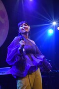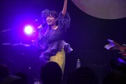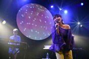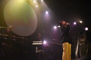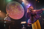 開演時刻を過ぎると、DorianとKAYO-CHAAANが紡ぎ出す心地よいビートが会場に充満する中、バックに大きな月が浮かぶ月見ル君想フのステージに脇田が登場。オーディエンスによる歓迎の拍手を浴びつつ、オープニングトラックからそのままつなげる形で「遊星からのアイラビュー oh! oh!」を1曲目に披露した。さらに脇田はアシッドジャズテイストの「Cloudless Night」、冗談伯爵のカバーであるソウルフルな1曲「LED」、ディスコチューン「IRON」を次々に歌い、突き抜けるように伸びやかな歌声を会場いっぱいに響かせる。彼女の「今日は踊りまくっちゃってくださいね」という言葉の通り、このライブを待ち望んでいた観客はフロアを包み込んでいく音楽に身を任せ、思い思いに体を揺らした。