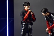 彼らが日本でオフラインのショーケースイベントを行うのは今回が初めて。日本のENGENEと対面した感想を聞かれたJUNGWONは「同じ空間にいられることが本当に光栄でうれしいです」、SUNOOは「一緒にいる時間が夢みたいです。本当に会いたかったです」と感慨深げな表情を浮かべる。「ENGENEの皆さんを見て、日本に来た実感が湧きました」と客席を見渡したNI-KIが、古家から「生で聞くといい声だねえ!」と褒められると、彼は「いやいや、古家さんのほうも……」とすかさず謙遜し、世渡り上手な一面を見せていた。またSUNGHOONが「まだ歓声が出せないのが残念ですけど、一生懸命拍手したりペンライトを振ってくださったりして熱気が伝わります!」と生き生きとした表情でコメントすると、ENGENEたちはペンライトを大きく揺らしてさらなる熱気を届けていた。