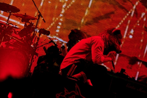 開演時刻を迎え、ステージ前に設置された巨大なLEDビジョンが左右に開くと5匹の姿が現れる。さらに6人のストリングス隊やサポートキーボーディストも鎮座し、この日のライブがいつもと異なることをファンに印象付けた。オープニングを飾った楽曲は「Between fiction and friction II」。トリッキーなサウンドにストリングスがさらなる彩りを加え、オーディエンスを一気に惹き込んでいく。「Dive」を終えると、Jean-Ken Johnny(G, Vo, Raps)は「イケルノカ、有明アリーナ! 合言葉ハタダ1ツ、全員マトメテカカッテコイヤ!」と絶叫し、観客の歓声を浴びた。