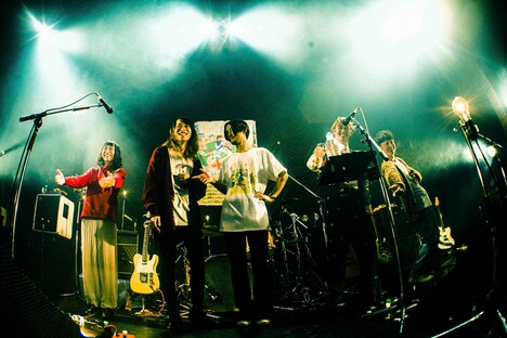 ライブの後半で高橋は「『すももハイツ』という企画をやって、自分たちの好きなことだけを突き詰めていけばいいんじゃんと思って。自分たちが信じてるものだけを、これから死ぬまでやっていけたらなと思ってます」とこのツアーを通じて感じた思いを真摯に語る。そして5人は「世田谷代田」「LOVE SONG」を演奏し、真っ赤な照明を浴びながら歪んだ音を鳴らしてステージをあとにした。その後、アンコールの拍手を受けて再び舞台に立った5人はchelmicoの「Love Is Over」をカバーする。chelmicoのMamikoが加わり会場が歓喜に沸き立つと、それに続いてRachelが登場するかと思いきや、姿を現したのは同じ金髪姿の真空ジェシカ・ガク。遅れてやって来たRachelとMamikoに背中を押されて半ば無理矢理ステージ中央に立たされたガクは所在なさげに体を揺らし、「すももハイツ」ならではの不思議なコラボパフォーマンスが繰り広げられた。