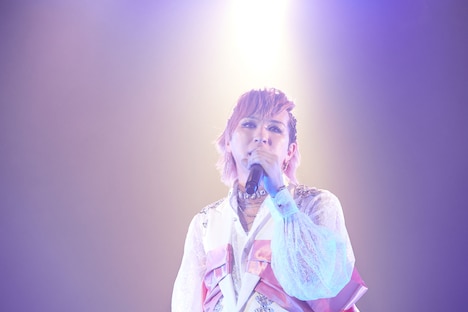 その後はスーツ姿のKamusがダンスで“別れのストーリー”をシリアスに表現するソロパートも。Kamusが描いたストーリーからつながるように、3人は「オリビアを聴きながらを聴きながら」「Moratorium」「DYSTOPIA」といった切ないミドルナンバーを立て続けにパフォーマンスした。HIDEKiSMの「東京、盛り上がってるかー!」の力強いかけ声から、エンガブが得意とするクラブサウンドの楽曲パートへと突入。「melamela」「Sorry Not Sorry」「SLAY」「CABARET」とダンサブルなナンバーを畳みかけ、オーディエンスを大いに躍らせる。最後にメンバーが「いつかみんなで一緒に歌いたい」という願いを込めて、シンガロングパートが印象的な楽曲「Symphony」を力強く歌い上げてステージを降りた。