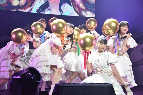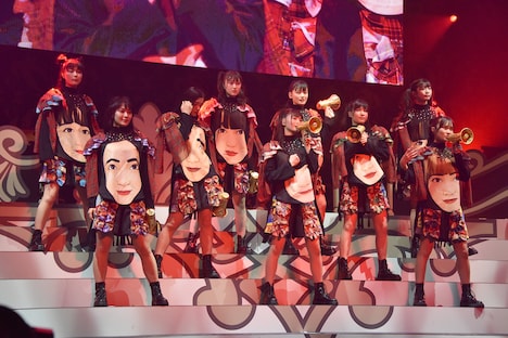 幕間の時間、ステージ後方のスクリーンには、いぎなり東北産がホームパーティをしている映像が映し出される。桜ひなのが「ここまで来れたのは皆産のお陰」だと映像の中から客席に向かって呼びかけ、全員で扉を開けるシーンで映像が終わると、再びメンバーがステージに登場した。自身の顔が大きくプリントされた斬新な新衣装に着替えた彼女たちは、エレクトロポップな新曲「HiGHER,HiGHER!!」をクールにパフォーマンス。さらに金色の拡声器を手に「メタハンマー」をワンコーラス披露したところで、怒涛のソロ&ユニット曲のコーナーへ。目まぐるしく展開されるこのコーナーを一瞬でも見逃すまいと、オーディエンスは一心不乱にステージを見つめる。9人が再びステージにそろったところで、先ほどワンコーラスのみの披露だった「メタハンマー」の続きを歌い上げたメンバーは、会場の皆産とともに「BUBBLE POPPIN」を踊り、中野サンプラザをダンスフロアに変えてみせた。