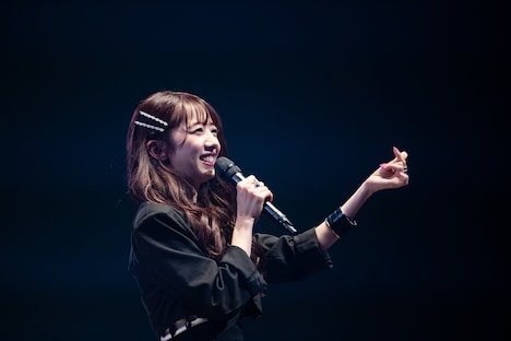 「蜃気楼」をしっとりと聴かせたのち、真山は今回の生誕ライブに対する思いを語る。昨年エビ中のメジャーデビュー10周年を迎えながらも、声帯ポリープの手術のため思うように歌えない時期が続いたと振り返った真山は「そんな中でもみんなが待っていてくれて。私は負けず嫌いだから『大丈夫?』と言われたくないんだけど、『大丈夫?』という言葉と一緒に『待ってるよ』と言ってくれたことがとてもうれしかったです。待っていてくれてありがとうございます」と、ファミリーへの感謝を伝えた真山は、最後に自身のソロ曲「Shen-Shen Passion Night」と「Liar Mask」を熱唱。ロングヘアを振り乱してのパフォーマンスで、熱い思いをファミリーへと届けた。