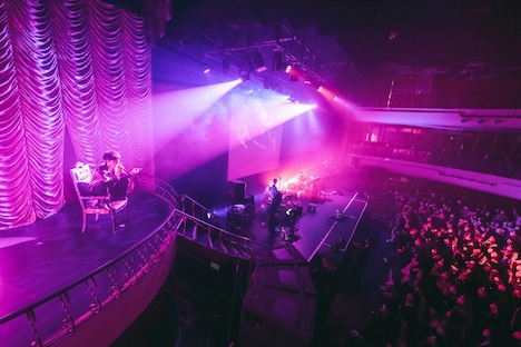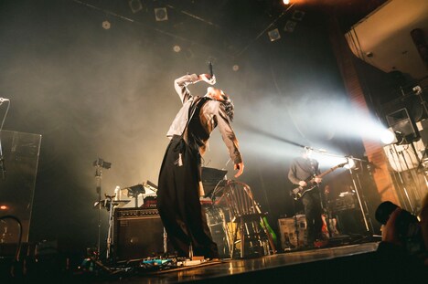 バラードナンバー「終夜」をたおやかに届けたあと、Sanoは一度ステージをあとにする。Sanoのいない舞台でバンドメンバーはジャズセッションを繰り広げた。オーディエンスが心地のいいサウンドに身を任せて自由に体を揺らしていると、「楽しそうだね! 俺も混ぜてくれよ」というSanoの声がどこからともなく聞こえてくる。声のするほうを見上げると、ステージ横の階段の上に無邪気な表情を浮かべるSanoの姿があった。Sanoは「ジャイアントキリング」を激しく体を揺らして歌い、最後にはステージに仰向けになって倒れ込む。「革命的閃光弾」でもSanoは舞台を動き回りながら衝動のままに歌い、さらに最新ミニアルバムの中でもアップテンポのナンバー「アビス」でフロアの熱気を一層引き上げた。
