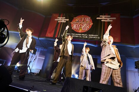 イベントのトップバッター・世が世は、アッパーチューン「無理無理無理」でライブの口火を切る。グループのコンセプトである“真面目型おふざけ集団”を体現するような笑いと勢いのあるパフォーマンスで客席を盛り上げた彼らは、昨年12月にリリースした“裏デビューシングル”の表題曲「Winter Prince」でおふざけ抜きのライブを展開。ミラーボールがゆっくり回る幻想的で“雪景色”のような景色が広がる中、しっとりとした歌でファンを魅了した。